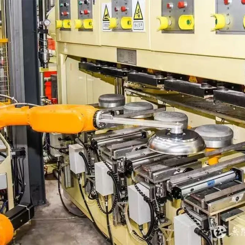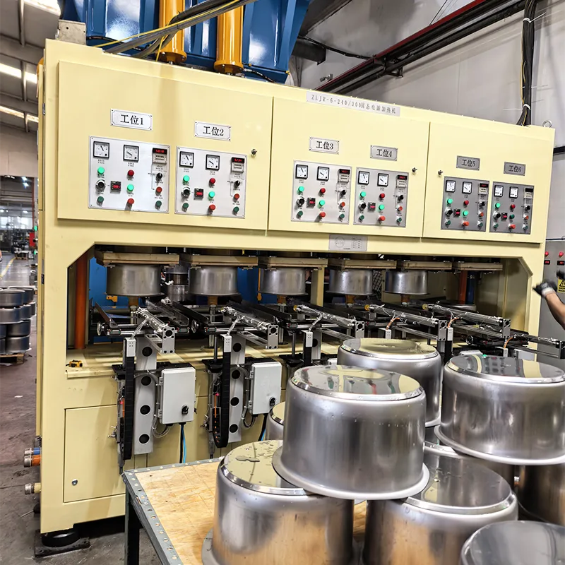 Fem-station inline varmemaskine til automatiseret produktion af rustfrit stål grydebundbelægning